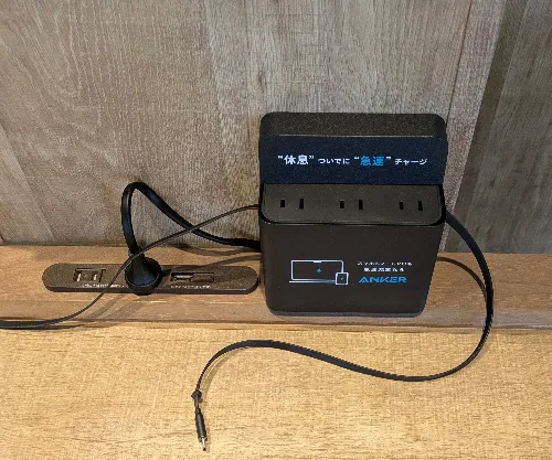 この装置でパソコンにType-Cインターフェイスコードで充電ができる。上部には4つぐらいのコンセント口がある。ACアダプターを持っている人にも利用できる。